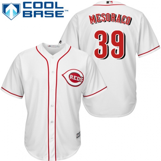 Home>MLB>Cincinnati Reds>Devin Mesoraco>Youth Majestic Cincinnati Reds #39 Devin Mesoraco Authentic White Home Cool Base MLB Jersey