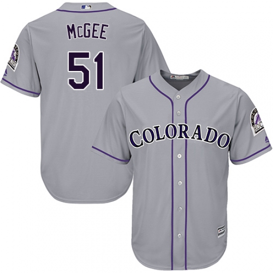 Home>MLB>Colorado Rockies>Jake McGee>Youth Majestic Colorado Rockies #51 Jake McGee Authentic Grey Road Cool Base MLB Jersey
