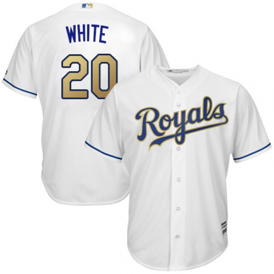 Home>MLB>Kansas City Royals>Frank White>Youth Majestic Kansas City Royals #20 Frank White Replica White Home Cool Base MLB Jersey