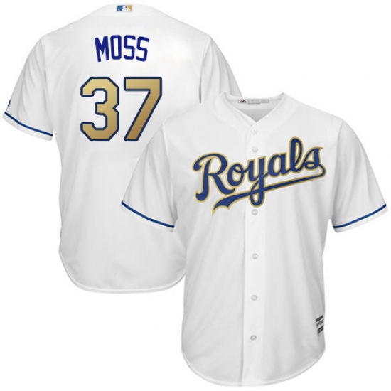 Home>MLB>Kansas City Royals>Brandon Moss>Youth Majestic Kansas City Royals #37 Brandon Moss Replica White Home Cool Base MLB Jersey