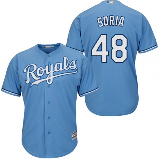 Home>MLB>Kansas City Royals>Joakim Soria>Youth Majestic Kansas City Royals #48 Joakim Soria Authentic Light Blue Alternate 1 Cool Base MLB Jersey