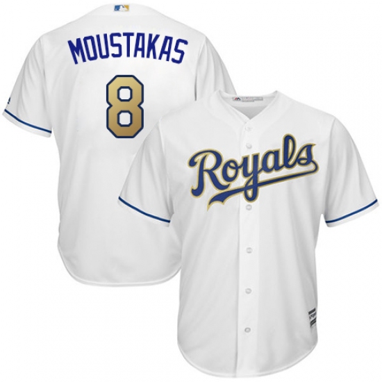 Home>MLB>Kansas City Royals>Mike Moustakas>Youth Majestic Kansas City Royals #8 Mike Moustakas Replica White Home Cool Base MLB Jersey