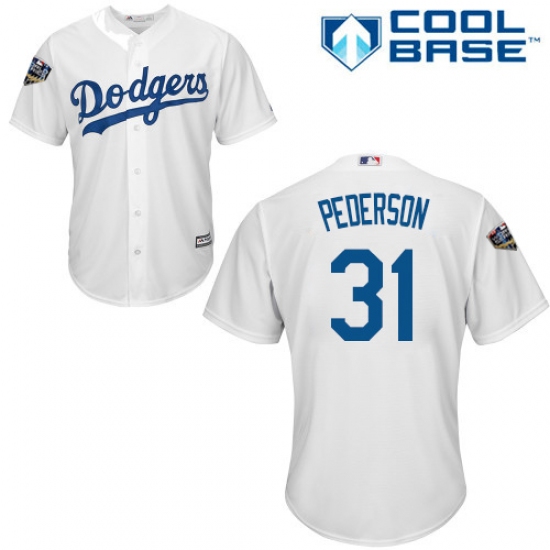 Youth Majestic Los Angeles Dodgers #31 Joc Pederson Authentic White Home Cool Base 2018 World Series MLB Jersey