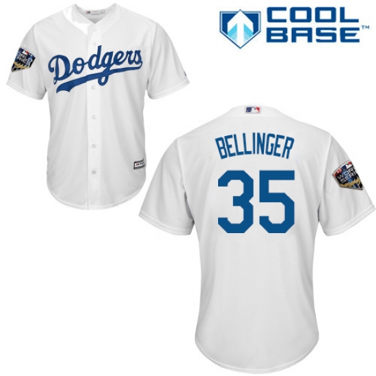>Youth Majestic Los Angeles Dodgers #35 Cody Bellinger Authentic White Home Cool Base 2018 World Series MLB Jersey