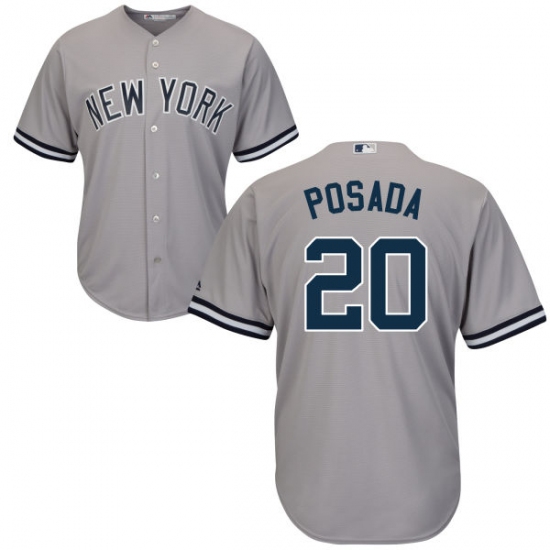 Home>MLB>New York Yankees>Jorge Posada>Youth Majestic New York Yankees #20 Jorge Posada Replica Grey Road MLB Jersey