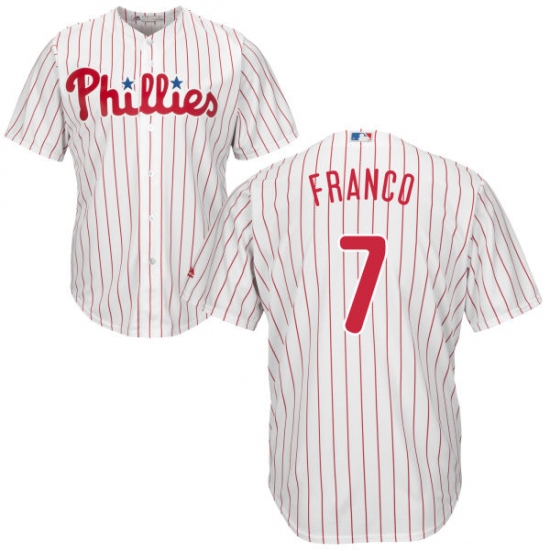 Home>MLB>Philadelphia Phillies>Maikel Franco>Youth Majestic Philadelphia Phillies #7 Maikel Franco Authentic White/Red Strip Home Cool Base MLB Jersey