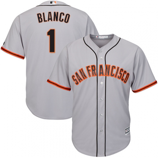 Home>MLB>San Francisco Giants>Gregor Blanco>Youth Majestic San Francisco Giants #1 Gregor Blanco Replica Grey Road Cool Base MLB Jersey