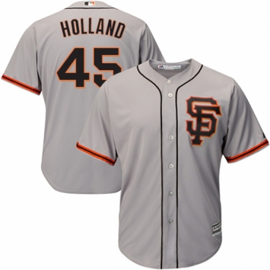 Youth Majestic San Francisco Giants #45 Derek Holland Replica Grey Road Cool Base MLB Jersey