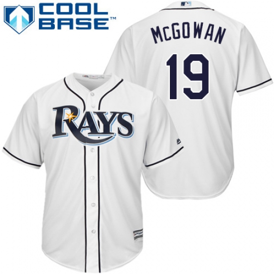Home>MLB>Tampa Bay Rays>Dustin McGowan>Youth Majestic Tampa Bay Rays #19 Dustin McGowan Replica White Home Cool Base MLB Jersey