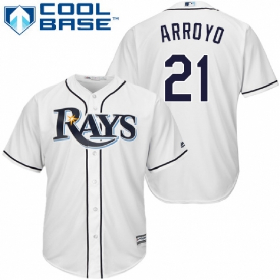 >Youth Majestic Tampa Bay Rays #21 Christian Arroyo Replica White Home Cool Base MLB Jersey