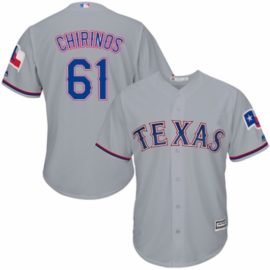 >Youth Majestic Texas Rangers #61 Robinson Chirinos Replica Grey Road Cool Base MLB Jersey