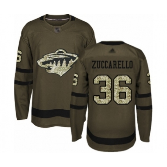Youth Minnesota Wild #36 Mats Zuccarello Authentic Green Salute to Service Hockey Jersey