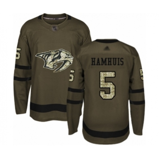 >Youth Nashville Predators #5 Dan Hamhuis Authentic Green Salute to Service Hockey Jersey