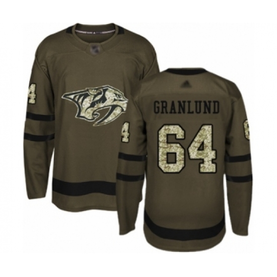 >Youth Nashville Predators #64 Mikael Granlund Authentic Green Salute to Service Hockey Jersey