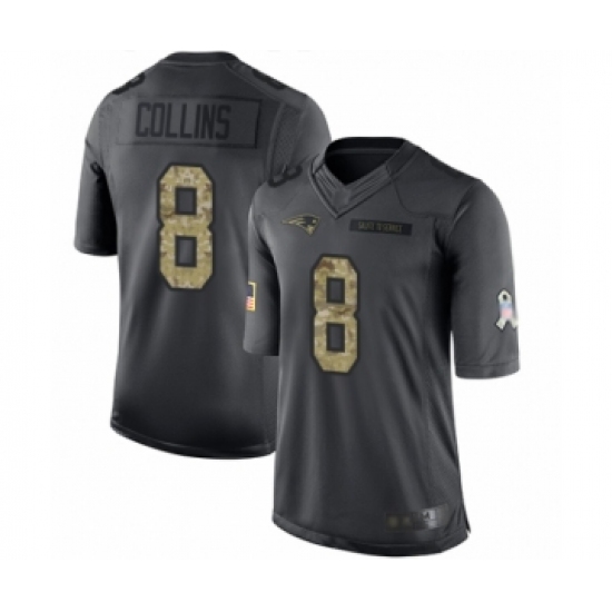 >Youth New England Patriots #8 Jamie Collins Limited Black 2016 Salute to Service Football Jersey