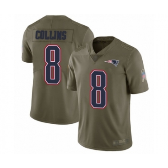 Men's New England Patriots #8 Jamie Collins Limited Olive Camo 2017 Salute to Service Football Jersey