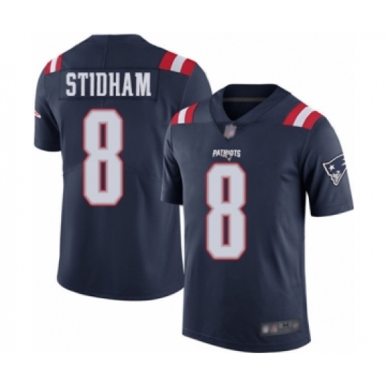 >Youth New England Patriots #8 Jarrett Stidham Limited Navy Blue Rush Vapor Untouchable Football Jersey