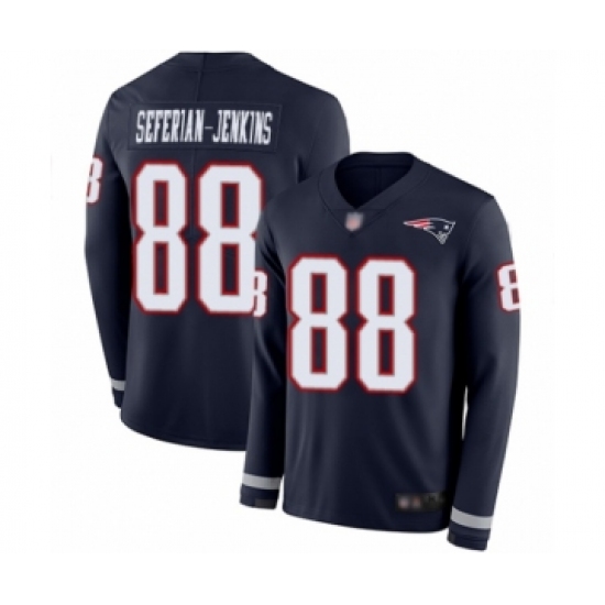 >Youth New England Patriots #88 Austin Seferian-Jenkins Limited Navy Blue Therma Long Sleeve Football Jersey