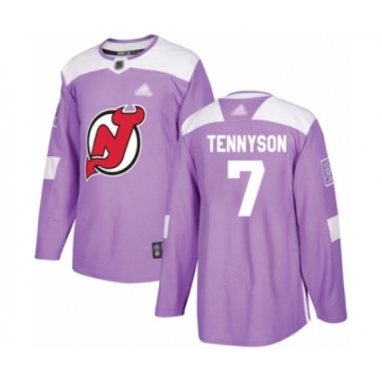 >Youth New Jersey Devils #7 Matt Tennyson Authentic Purple Fights Cancer Practice Hockey Jersey