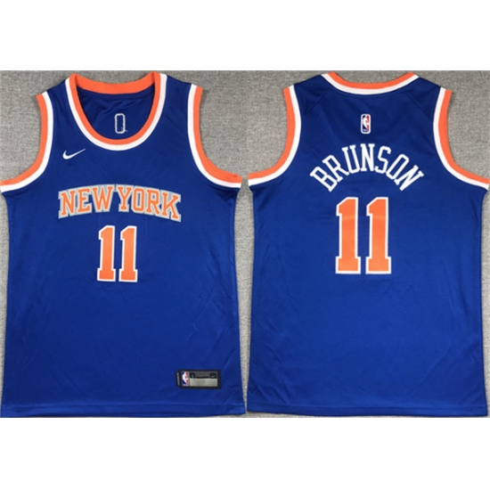 >Youth New Yok Knicks #11 Jalen Brunson Blue Icon Edition Stitched Swingman Jersey