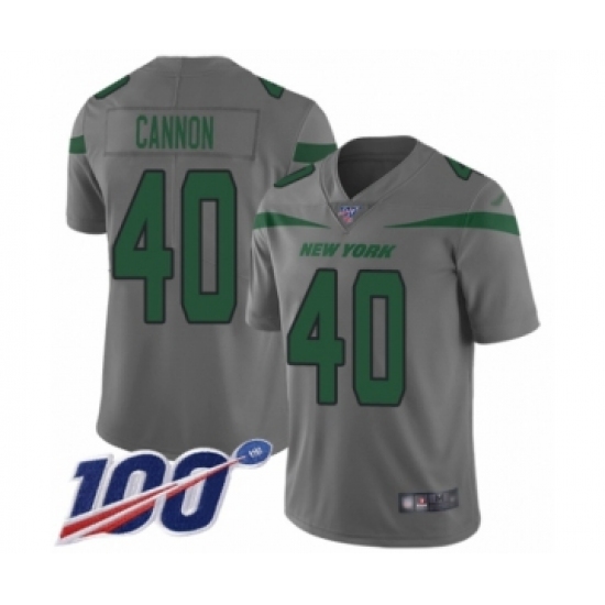 >Youth New York Jets #40 Trenton Cannon Limited Gray Inverted Legend 100th Season Football Jersey