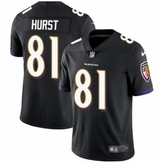 Men's Nike Baltimore Ravens #81 Hayden Hurst Black Alternate Vapor Untouchable Limited Player NFL Jersey
