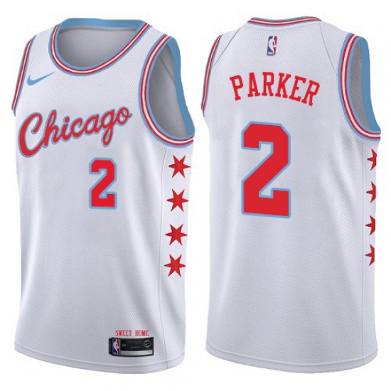 >Youth Nike Chicago Bulls #2 Jabari Parker Swingman White NBA Jersey - City Edition