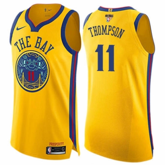 >Youth Nike Golden State Warriors #11 Klay Thompson Swingman Gold 2018 NBA Finals Bound NBA Jersey - City Edition