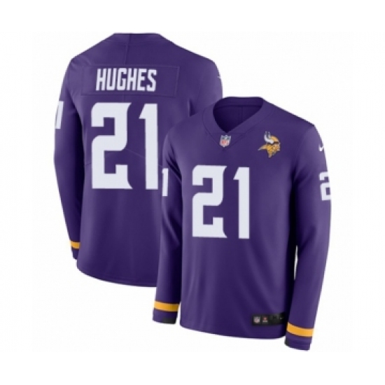 >Youth Nike Minnesota Vikings #21 Mike Hughes Limited Purple Therma Long Sleeve NFL Jersey