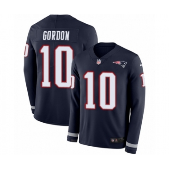 >Youth Nike New England Patriots #10 Josh Gordon Limited Navy Blue Therma Long Sleeve NFL Jersey