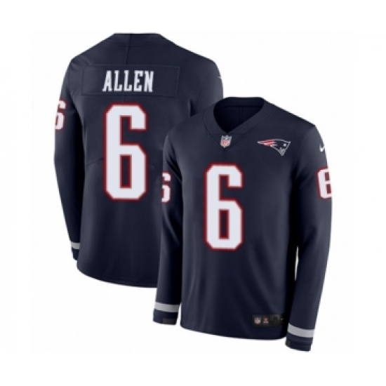 Men's Nike New England Patriots #6 Ryan Allen Limited Navy Blue Therma Long Sleeve NFL Jersey