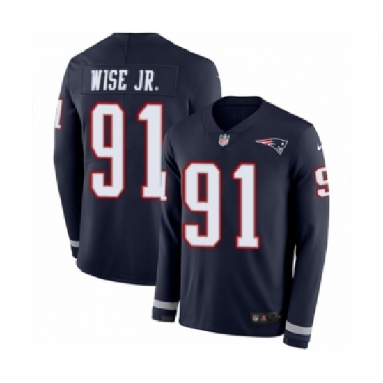Men's Nike New England Patriots #91 Deatrich Wise Jr Limited Navy Blue Therma Long Sleeve NFL Jersey