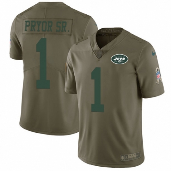 >Youth Nike New York Jets #1 Terrelle Pryor Sr. Limited Olive 2017 Salute to Service NFL Jersey