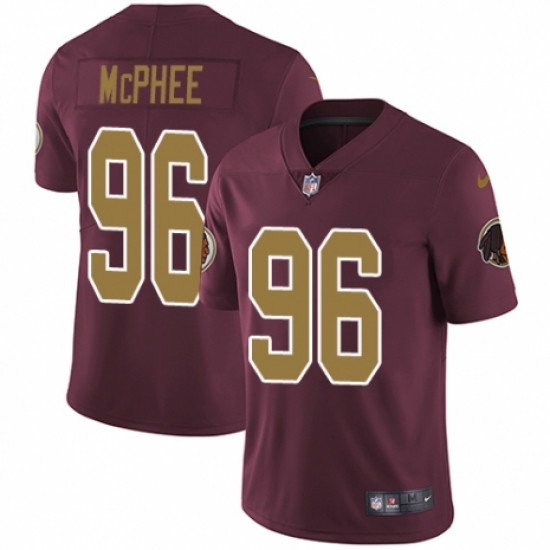 Youth Nike Washington Redskins #96 Pernell McPhee Burgundy Red Gold Number Alternate 80TH Anniversary Vapor Untouchable Limited Player NFL Jersey