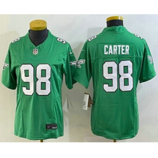 Women's Philadelphia Eagles #98 Jalen Carter Nike Midnight Green 2023 NFL Draft First Round Pick Limited Jersey