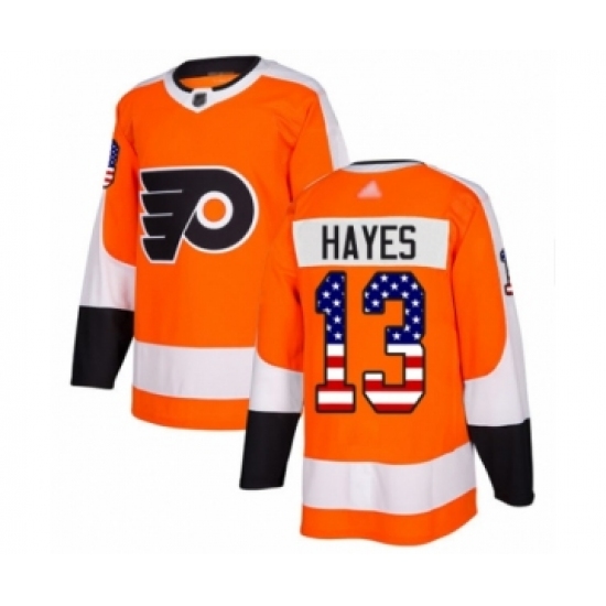 >Youth Philadelphia Flyers #13 Kevin Hayes Authentic Orange USA Flag Fashion Hockey Jersey