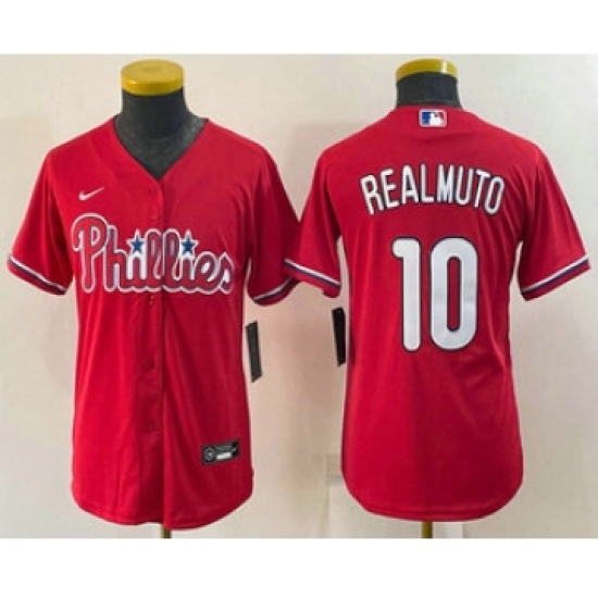 >Youth Philadelphia Phillies #10 JT Realmuto Red Stitched MLB Cool Base Nike Jersey