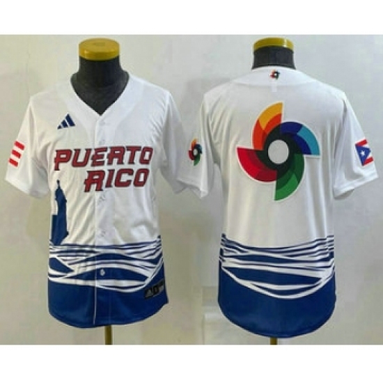 >Youth Puerto Rico Baseball Big Logo White 2023 World Baseball Classic Stitched Jersey
