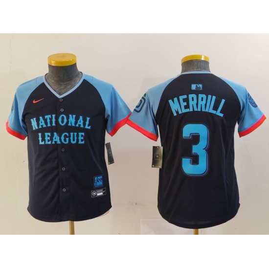 >Youth San Diego Padres #3 Jackson Merrill Navy 2024 All Star Limited Stitched Jersey