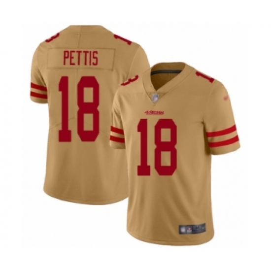 >Youth San Francisco 49ers #18 Dante Pettis Limited Gold Inverted Legend Football Jersey