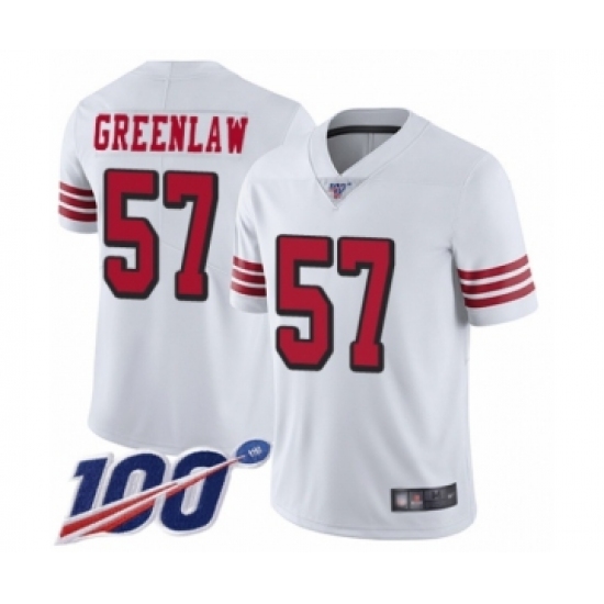 Men's San Francisco 49ers #57 Dre Greenlaw White Vapor Untouchable Limited Player 100th Season Football Jersey