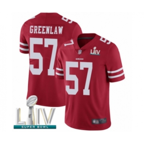 >Youth San Francisco 49ers #57 Dre Greenlaw Red Team Color Vapor Untouchable Limited Player Super Bowl LIV Bound Football Jersey