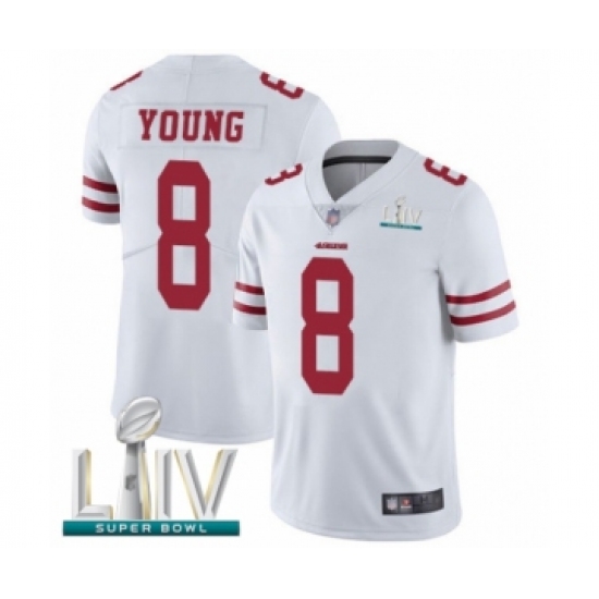 >Youth San Francisco 49ers #8 Steve Young White Vapor Untouchable Limited Player Super Bowl LIV Bound Football Jersey
