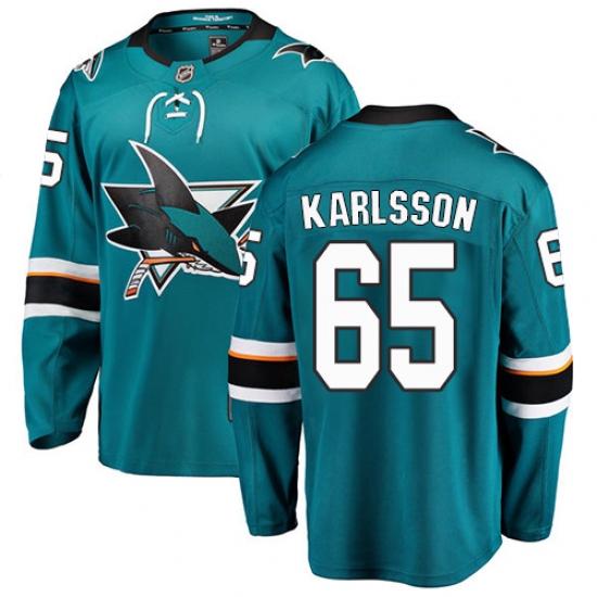 >Youth San Jose Sharks #65 Erik Karlsson Fanatics Branded Teal Green Home Breakaway NHL Jersey