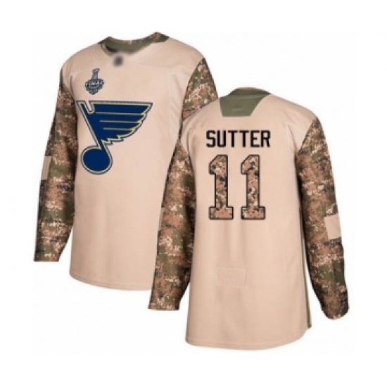 Youth St. Louis Blues #11 Brian Sutter Authentic Camo Veterans Day Practice 2019 Stanley Cup Final Bound Hockey Jersey