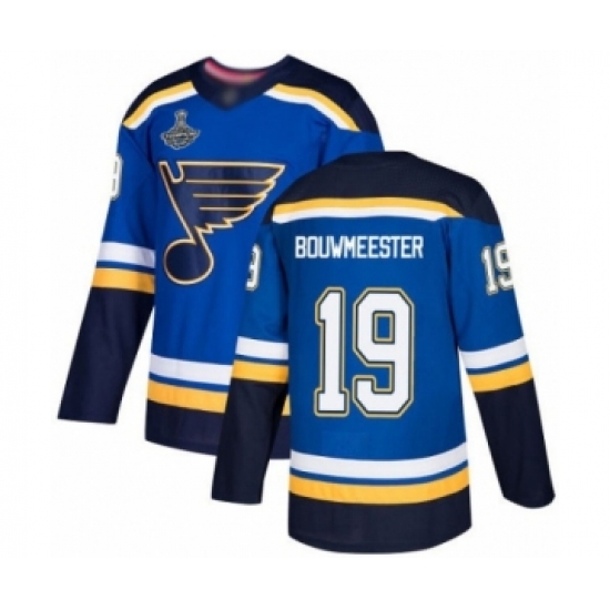 Men's St. Louis Blues #19 Jay Bouwmeester Authentic Royal Blue Home 2019 Stanley Cup Champions Hockey Jersey