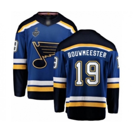 >Youth St. Louis Blues #19 Jay Bouwmeester Fanatics Branded Royal Blue Home Breakaway 2019 Stanley Cup Final Bound Hockey Jersey