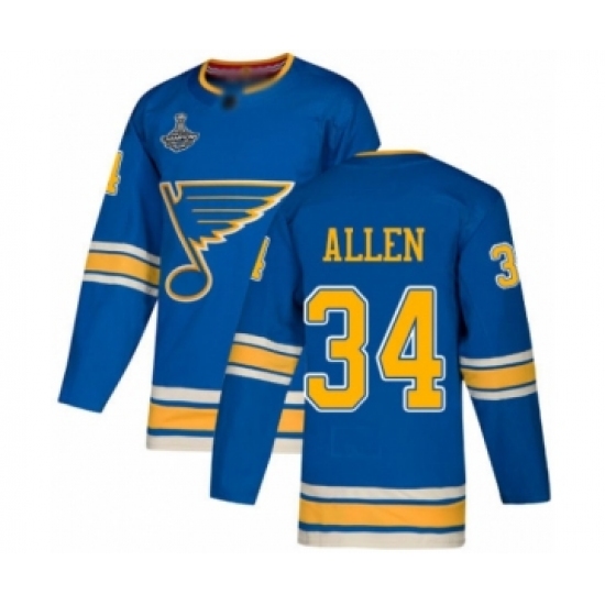 Youth St. Louis Blues #34 Jake Allen Authentic Navy Blue Alternate 2019 Stanley Cup Champions Hockey Jersey