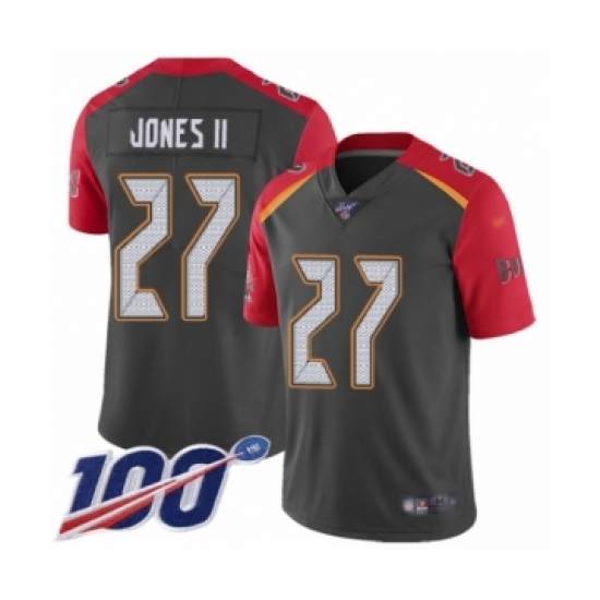 >Youth Tampa Bay Buccaneers #27 Ronald Jones II Limited Gray Inverted Legend 100th Season Football Jersey