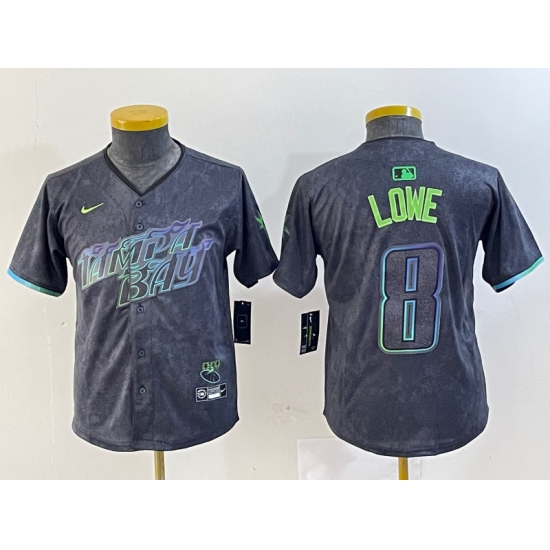>Youth Tampa Bay Rays #8 Brandon Lowe Charcoal 2024 City Connect Limited Cool Base Jersey